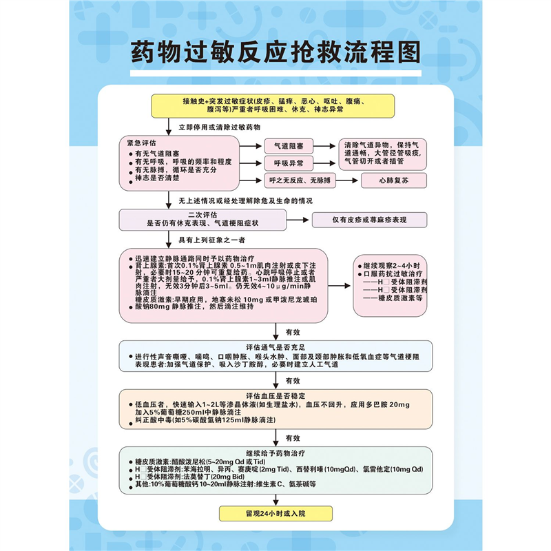 📚 过敏性休克抢救程序医院诊所卫生室海报过敏流程广告贴画挂画包邮
