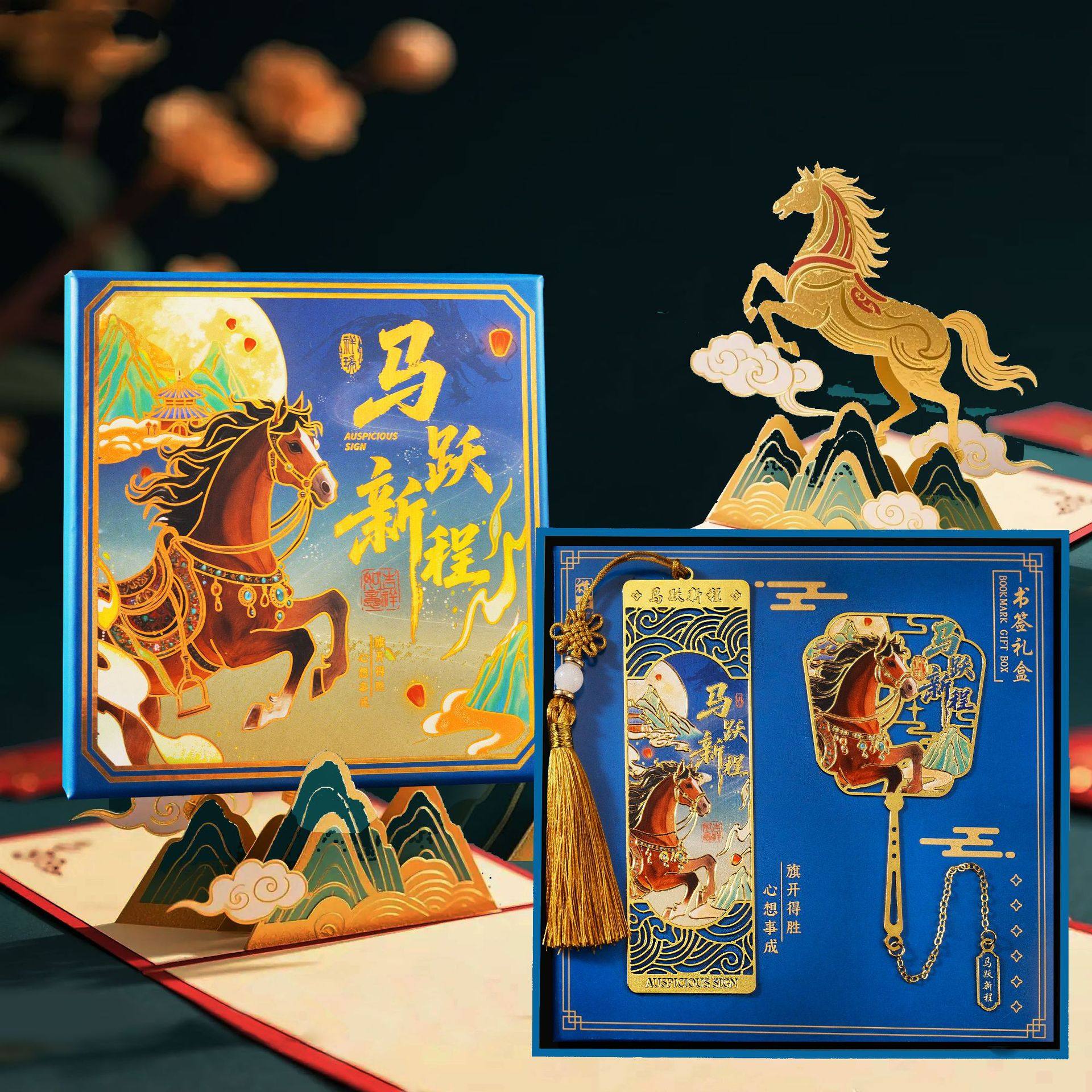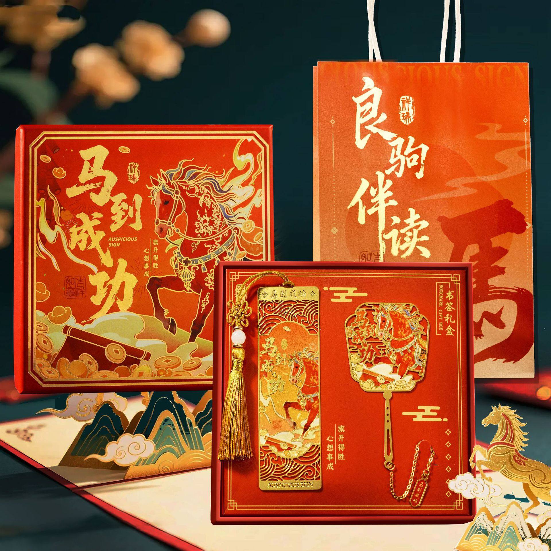 📚 马年金属书签国潮中国风创意文创礼品书签礼盒套装老师奖励学生公司年会伴手礼2026年新年礼物活动纪念品