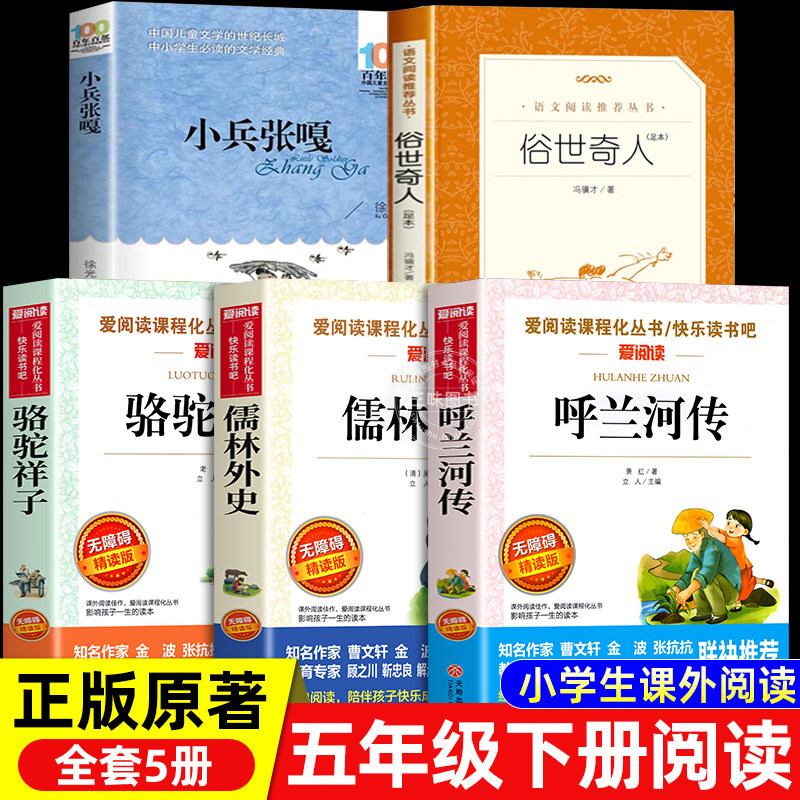 📚 五年级下册必读的课外书呼兰河传萧红著正版俗世奇人全本小兵张嘎徐光耀骆驼祥子老舍的书儒林外史5课外阅读书籍经典书目老师推荐