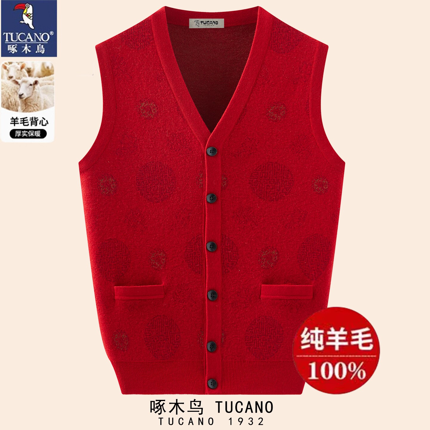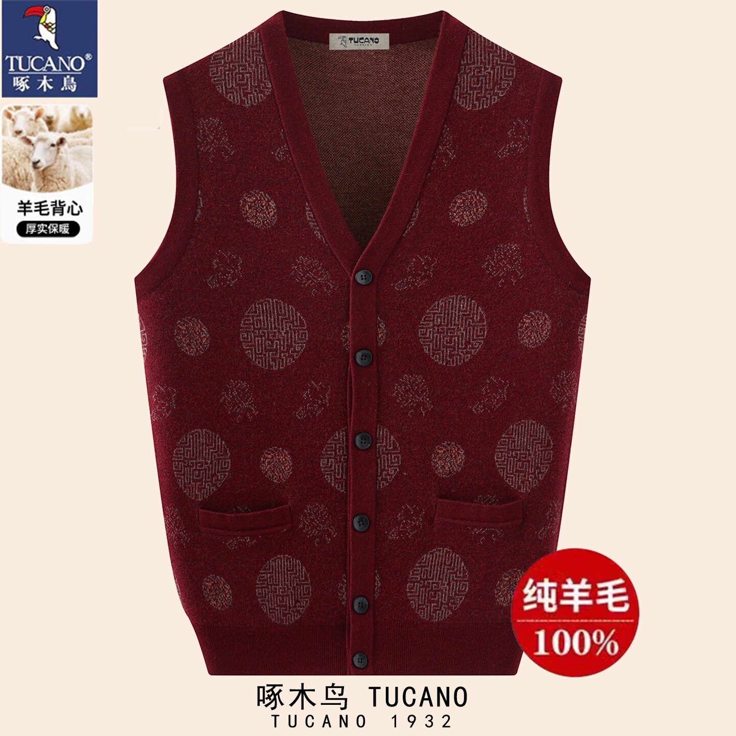 📚 啄木鸟100纯羊毛马甲男女秋冬新款坎肩中老年生日过寿爸妈情侣装