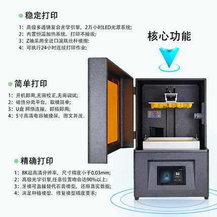 📚 光固化3d打印机8K高精度10.1寸黑白屏齿科种植桌面级机器家用商用