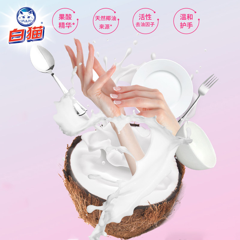 📚 白猫去油护手洗洁精2kg温和护手去油快可洗蔬果厨房清洁果香型