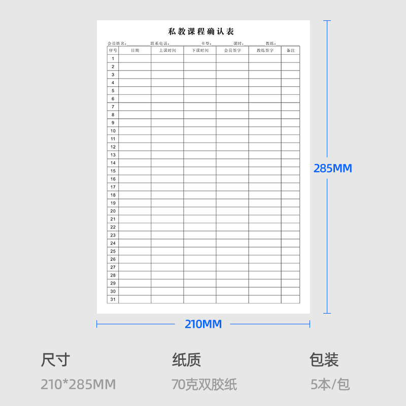 📚 A4私教课程确认表健身房瑜伽馆教学课时服务记录本训练签课本定制