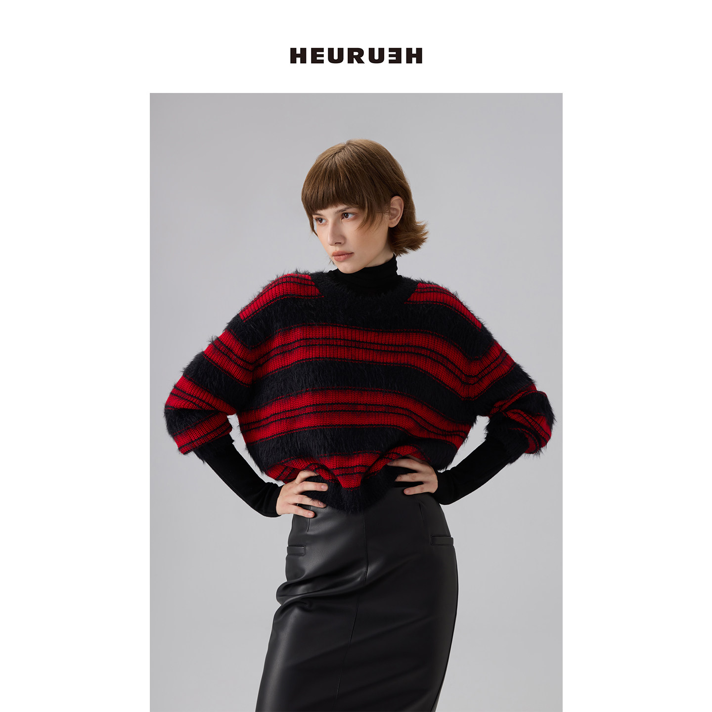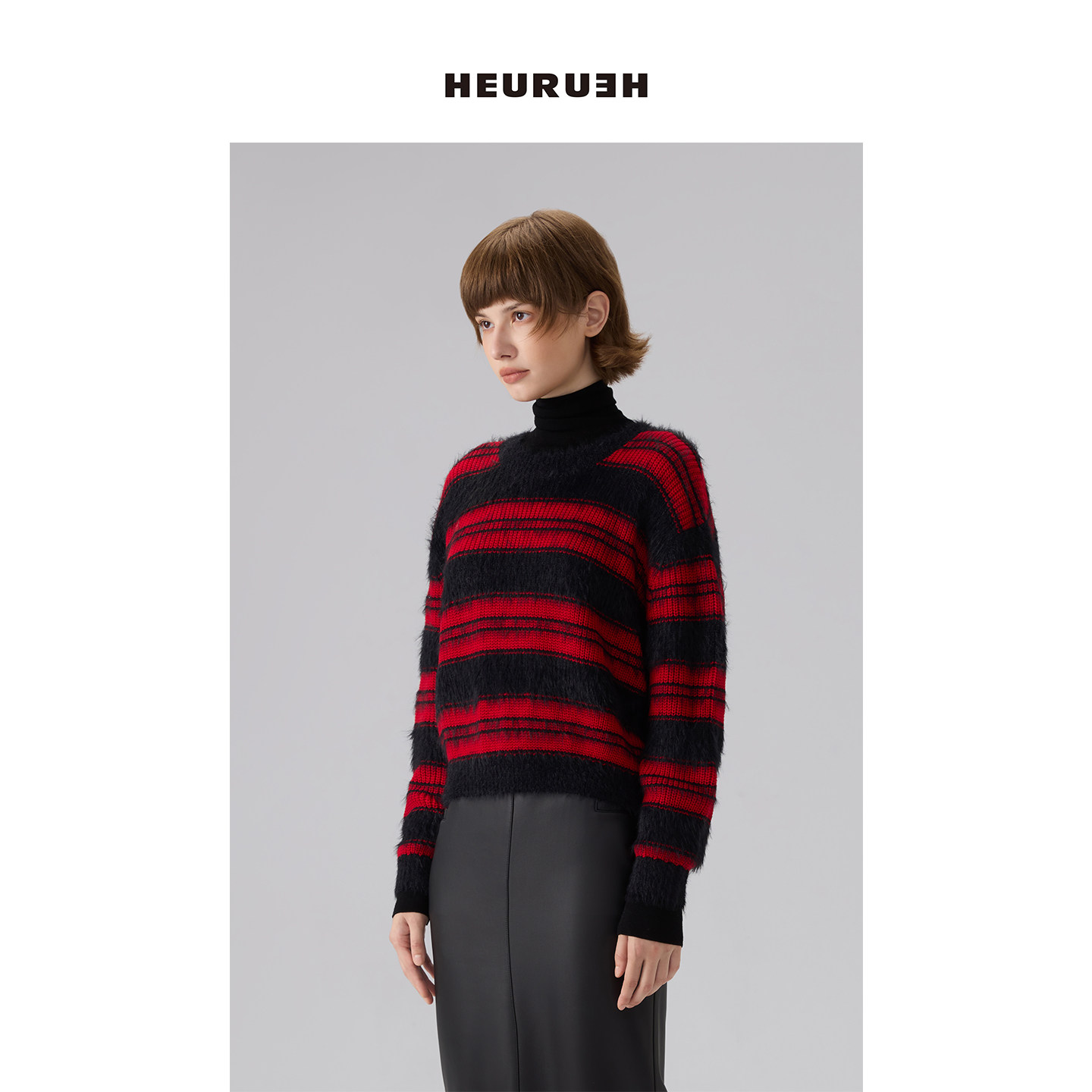 📚 HEURUEH 杨紫同款圆领套头条纹短款红色毛衣2025新款冬季针织