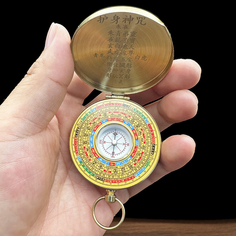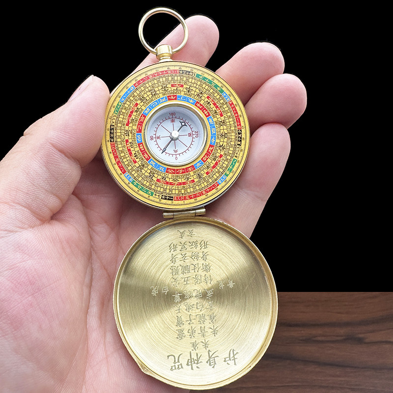 📚 黄铜罗盘随身携带八卦指南针高精度专业三合袖珍迷你小号怀表挂件
