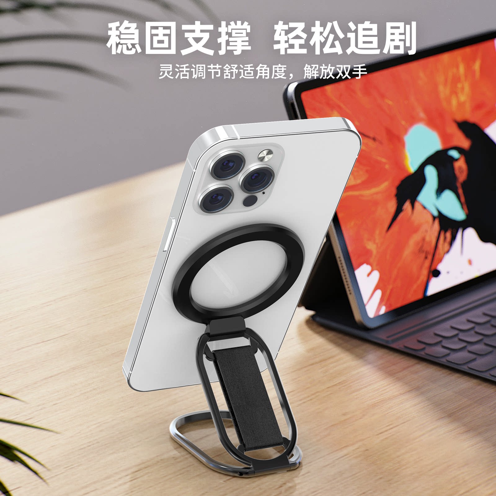 📚 幽浮magsafe磁吸手机支架便携轻薄折叠指环铝合金腕带磁力支架