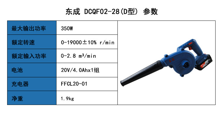 📚 东成 专业工具 DCQF02-28D 充电式吹风机 20V4.0Ah 吹尘机 单电池