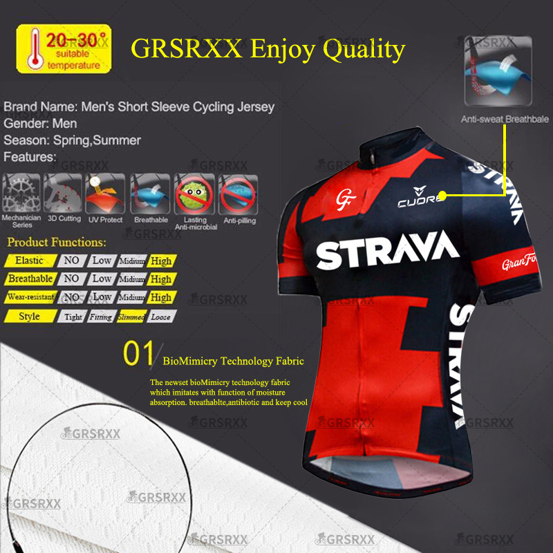 📚 STRAVA Men's Cycling Jersey Summer Breathable Male Short Sle