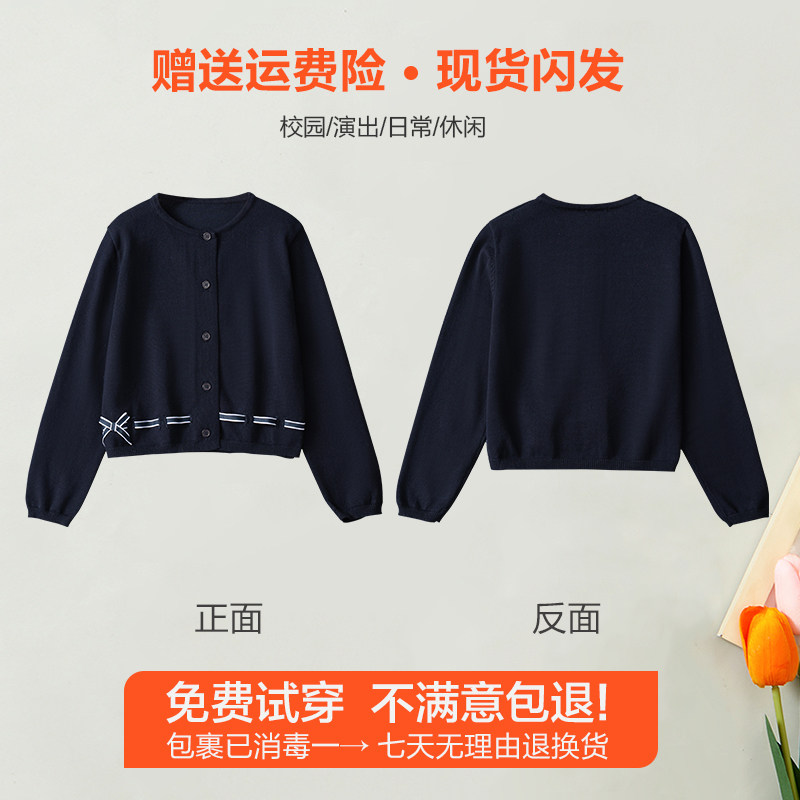 📚 女童校服毛衣儿童藏蓝色毛衫小学生校服女宝针织衫藏青色外套线衫
