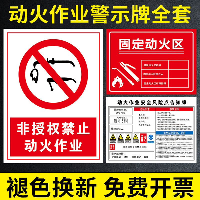 📚 动火作业警示牌固定动火区标识牌可动火区域提示牌贴非授权动火作业安全风险点告知牌临时固定动火点标牌定制