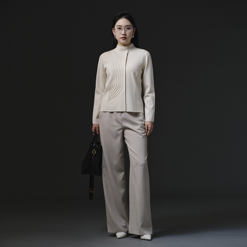 📚 TENGS滕氏织希女装春季新款艺术气质偏襟立体肌理立领针织衫上衣