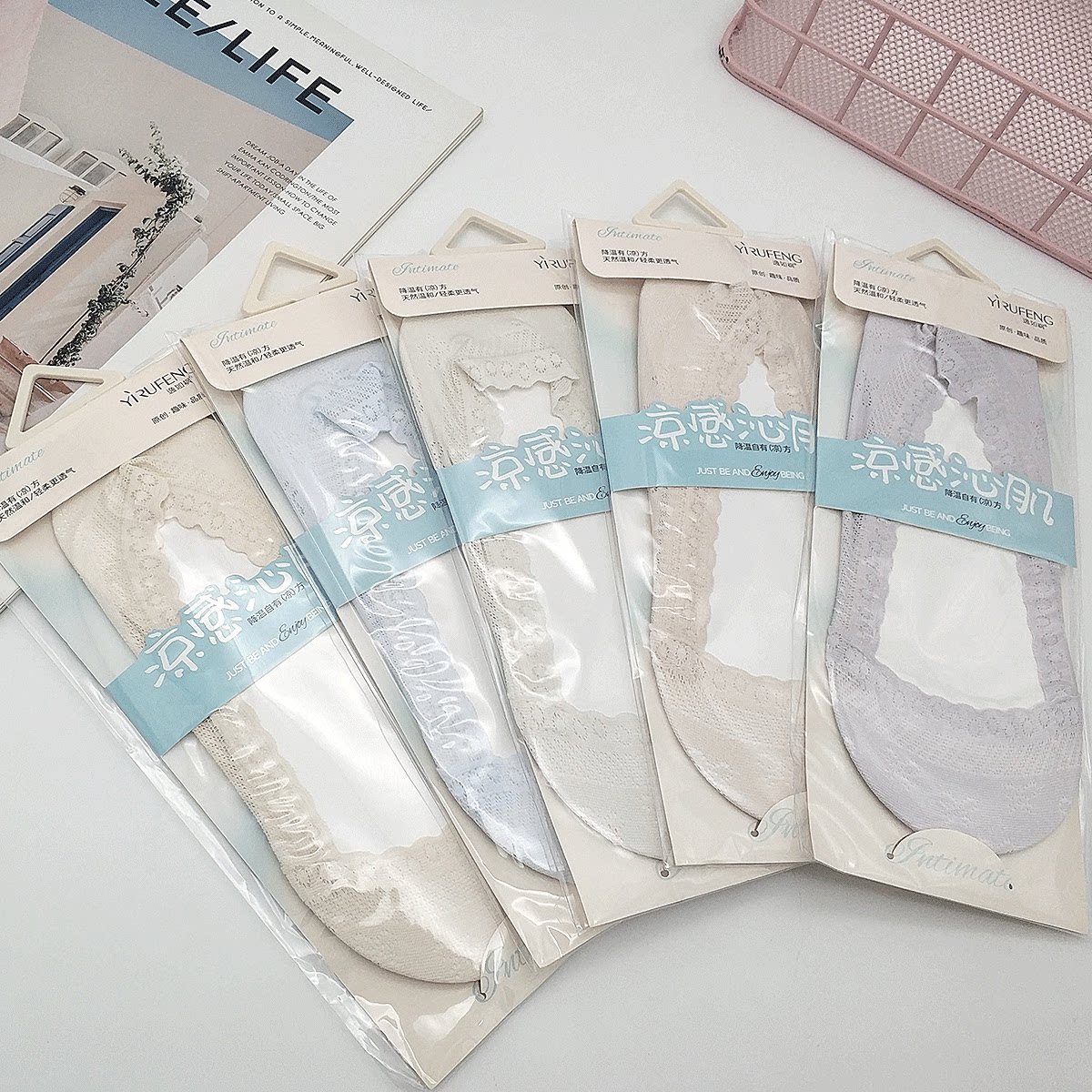 📚 5双逸如枫袜子女蕾丝船袜棉底浅口隐形短袜硅胶防滑夏季透气薄款