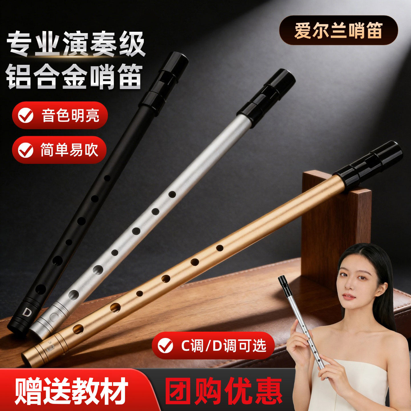 📚 爱尔兰哨笛小学生专用初学者六孔c调竖笛教学专业演奏高音d调直笛