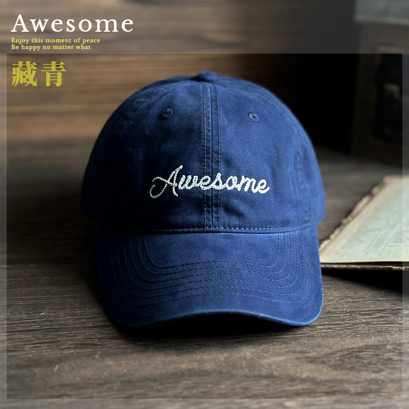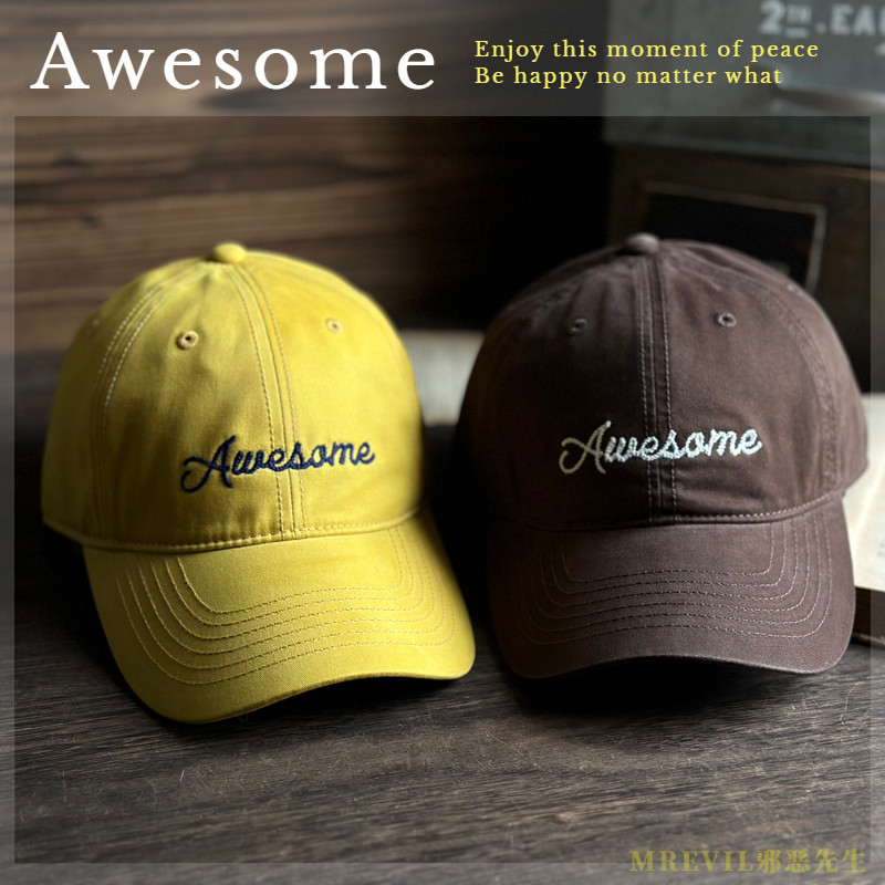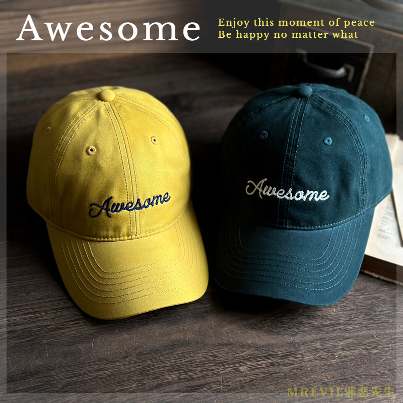 📚 韩版大气Awesome字母棒球帽深顶百搭弯檐鸭舌帽男女大头时尚潮流