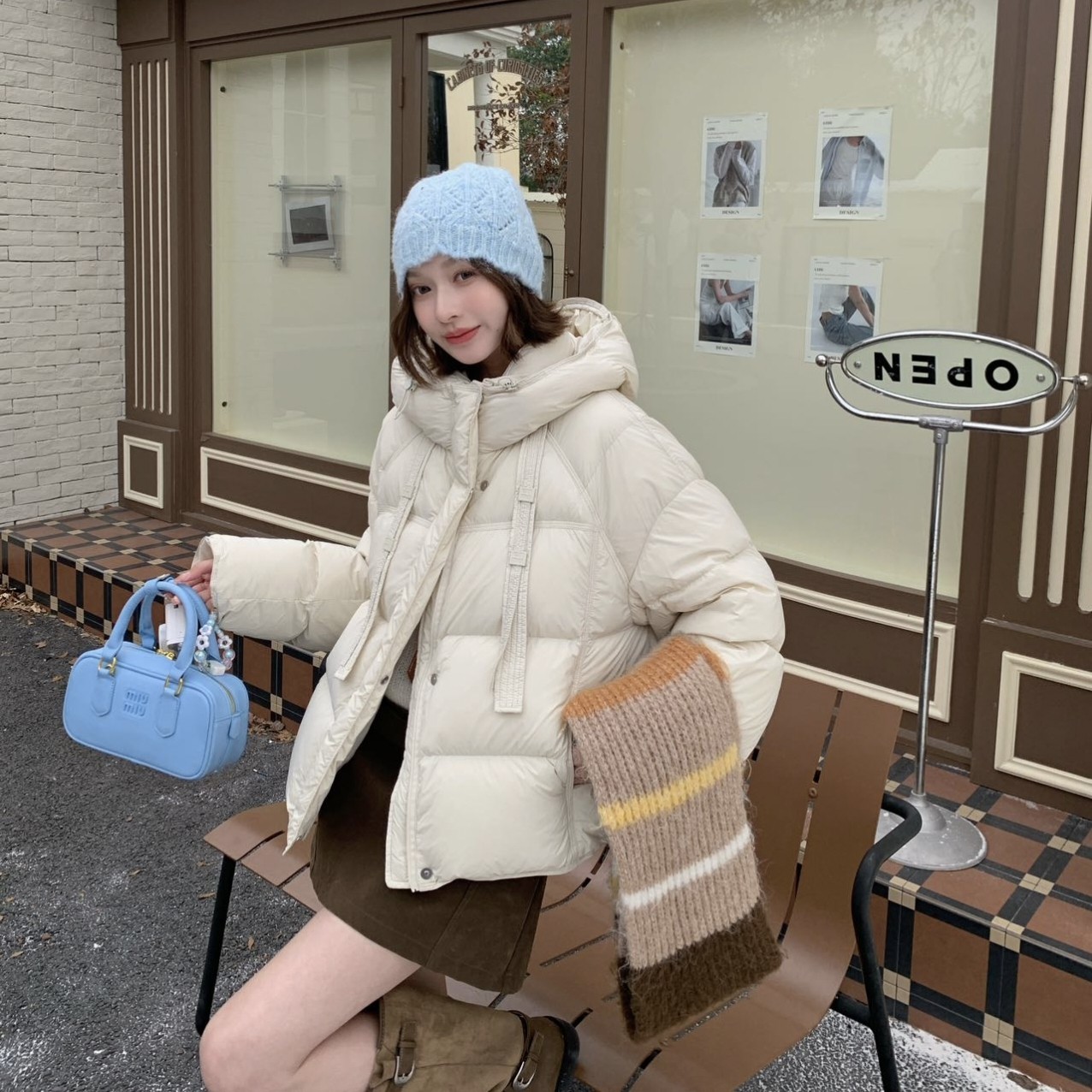 📚 HRF117泡芙羽绒服女短款2025冬季新款90白鸭绒连帽厚面包服外套