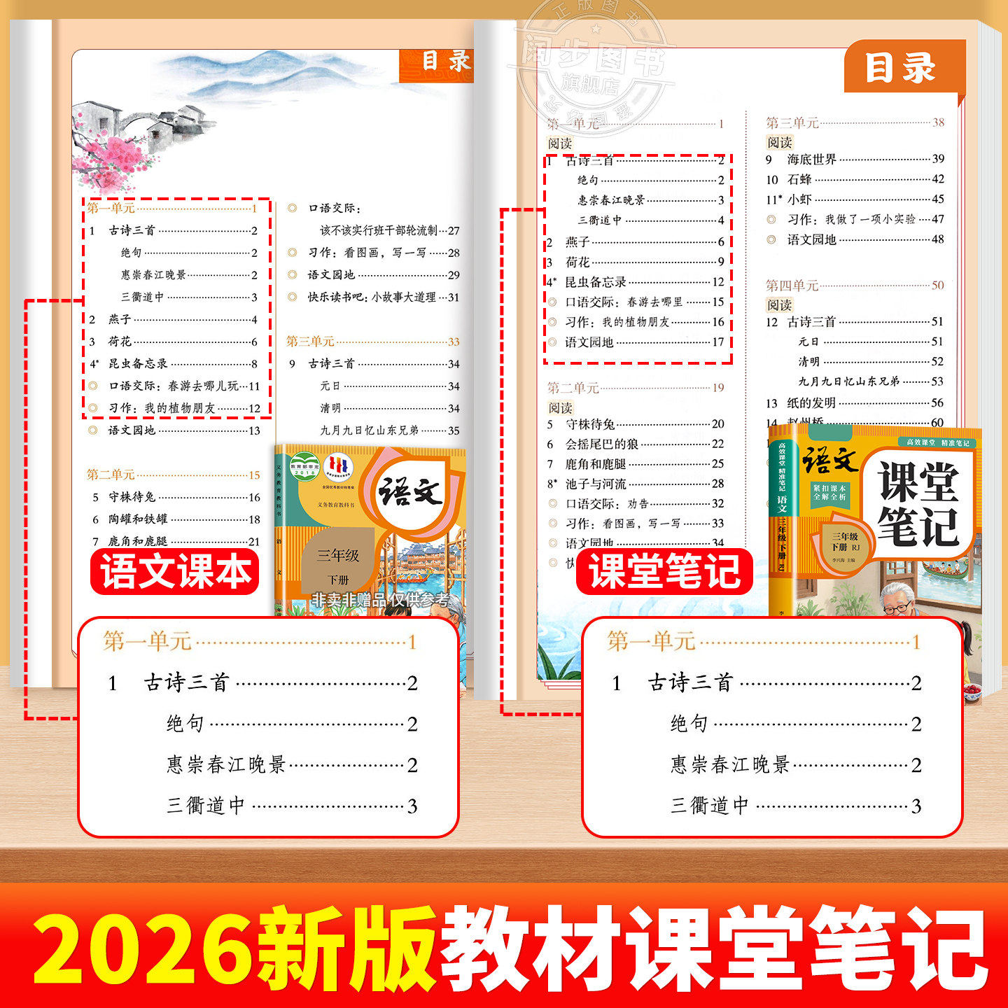 📚 2026课堂笔记一二年级三年级下四年级五六年级下册上册语文数学英语配套人教版2025小学课本教材全解读随堂同步练习预习书上新版Q