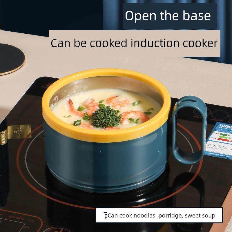 📚 时尚对比色学生宿舍方便面碗煮面杯快餐杯304不锈钢电磁炉加热饭