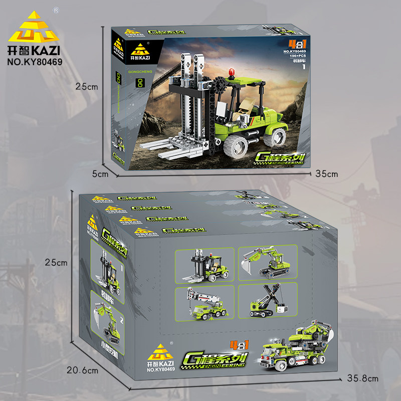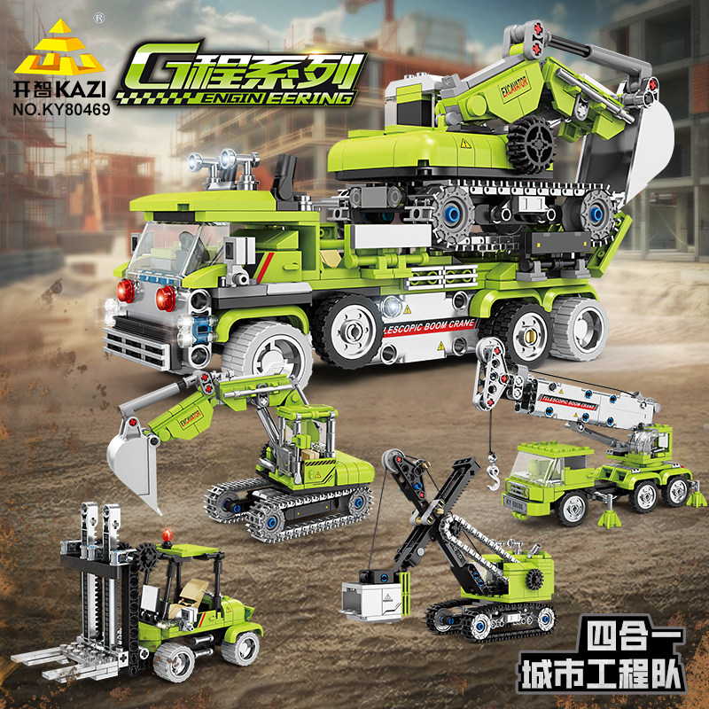 📚 开智积木城市工程队装载挖掘机吊车组装模型男孩拼插装小颗粒玩具