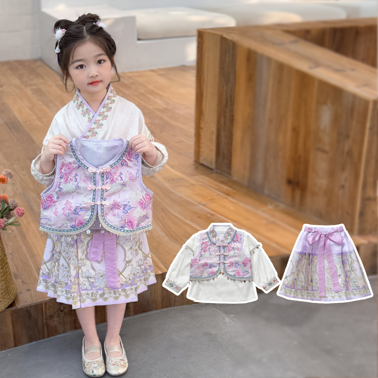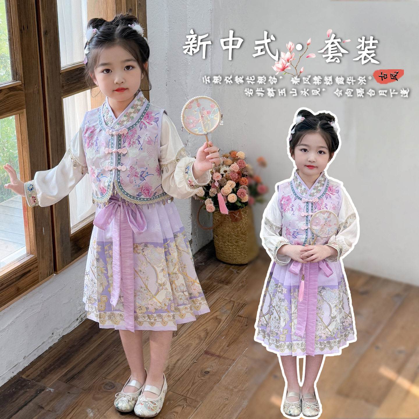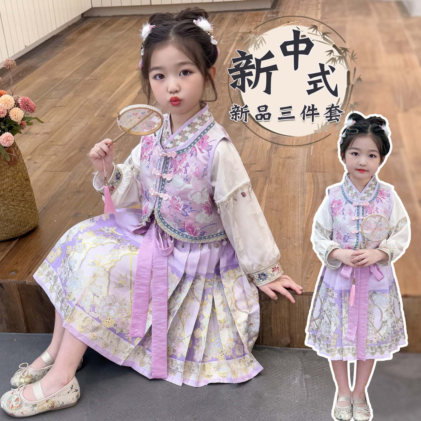 📚 秋季新款女童织金马面裙套装民族风气质儿童唐装国风新中式三件套