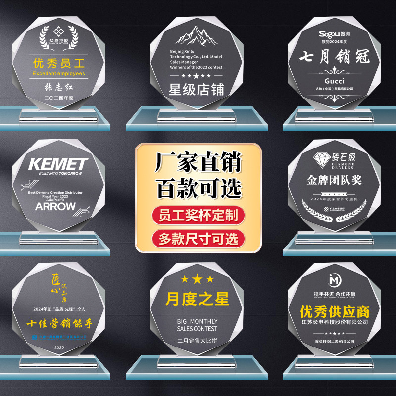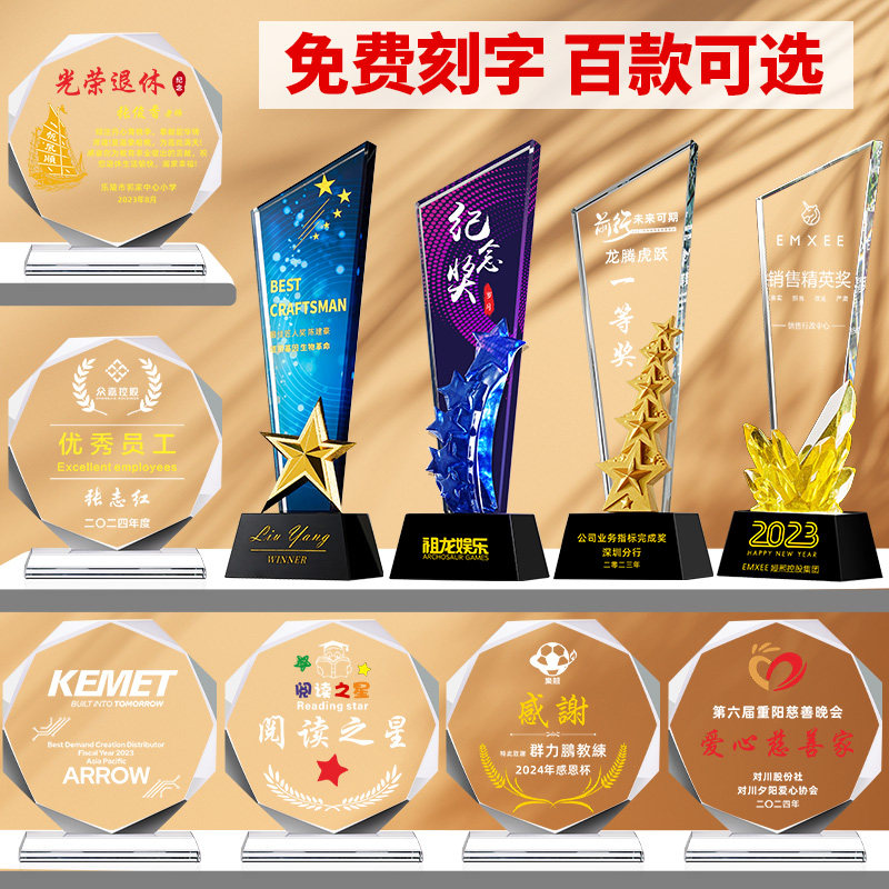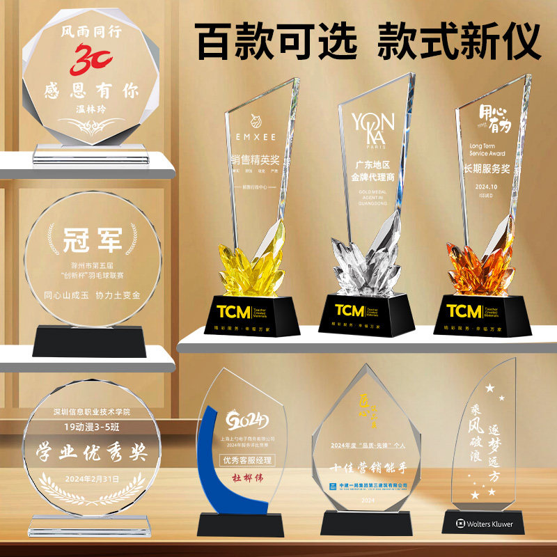 📚 水晶奖杯订制玻璃木质奖牌定制儿童小学生优秀员工学员授权感谢牌