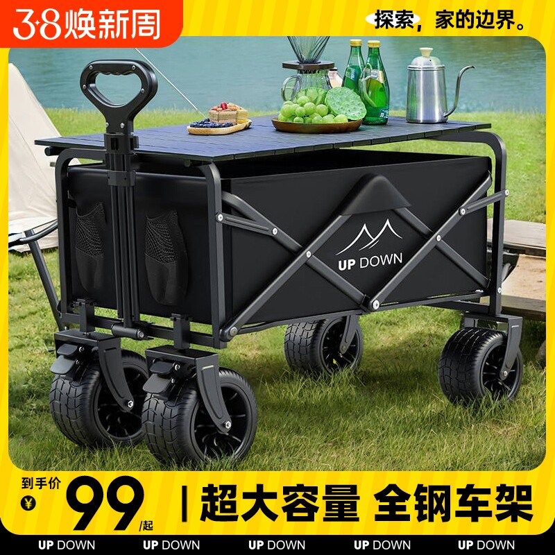 📚 露营车户外可折叠野餐手推车儿童可躺野营拖车摆摊旅行超大营地车