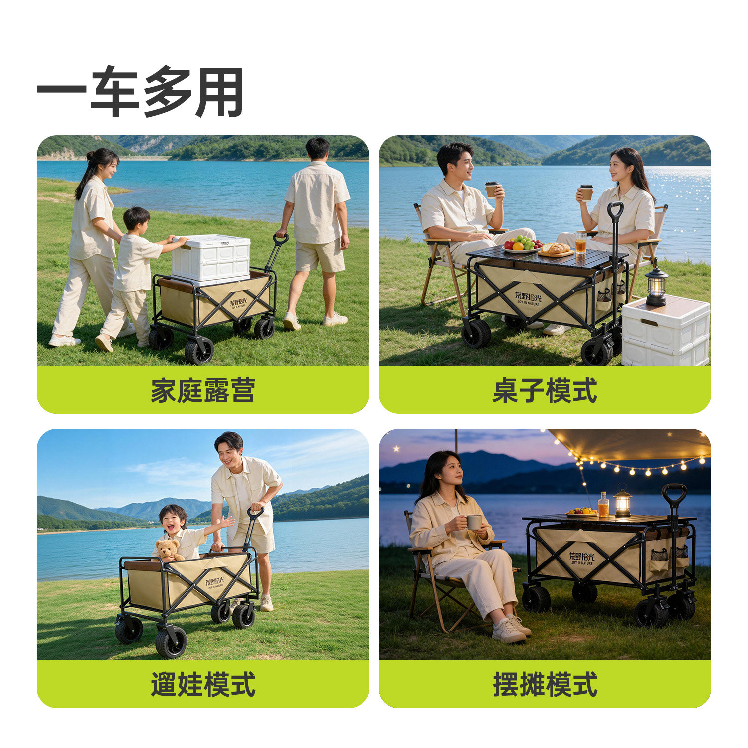 📚 荒野拾光户外露营车小号儿童可躺野营推车营地拖车可折叠大号摆摊