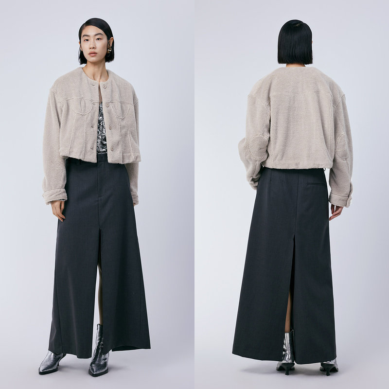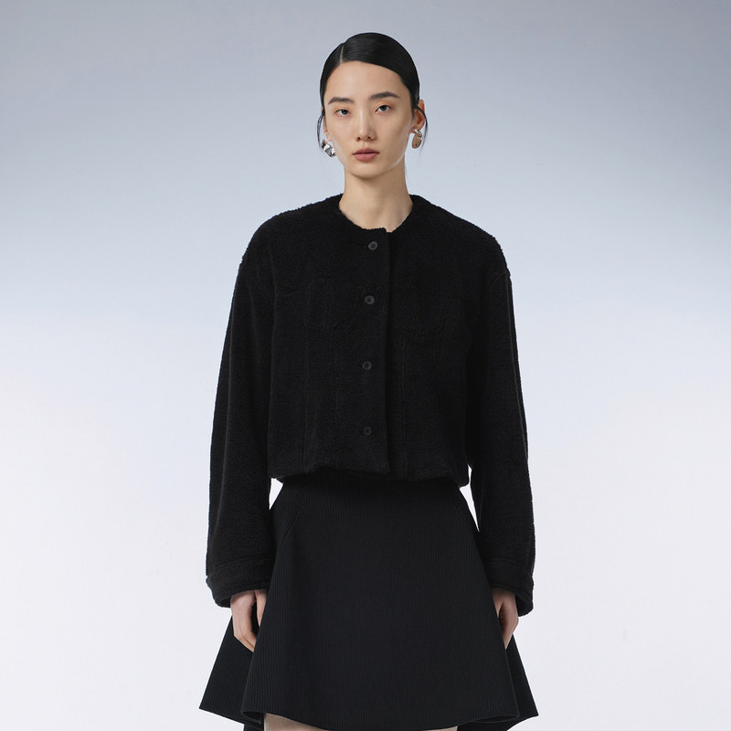 📚 JNBY/江南布衣春季仿皮草外套短款宽松圆领通勤仿羊羔毛5O1A12920