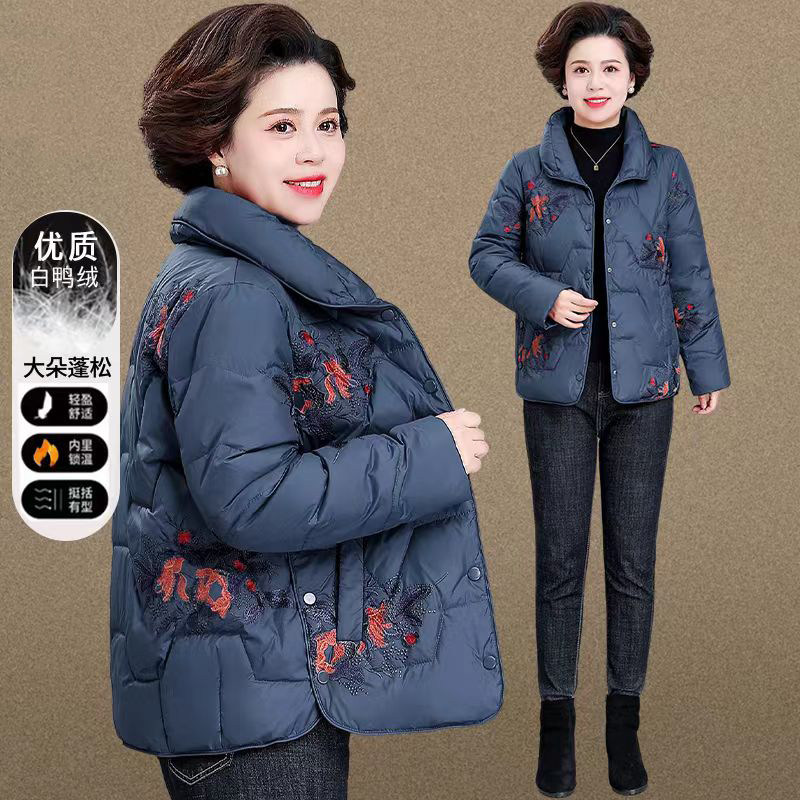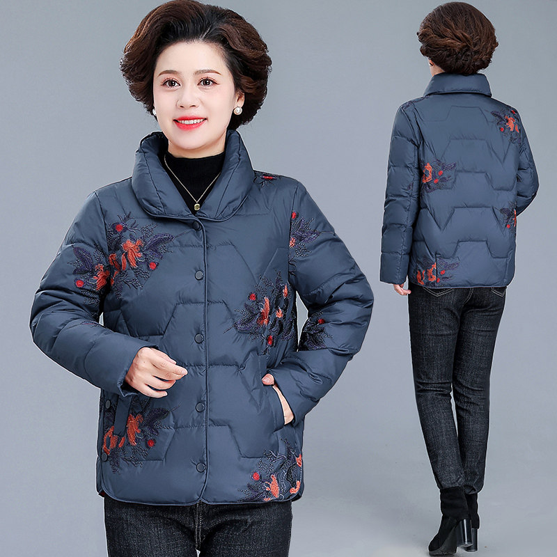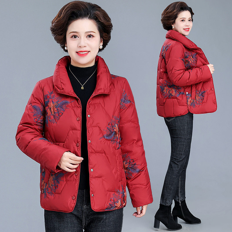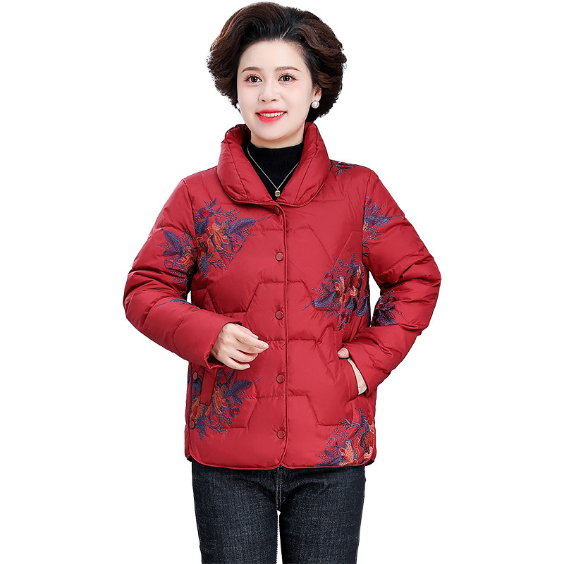📚 中老年妈妈冬装洋气短款羽绒服女大码奶奶加厚外套过年喜庆小棉袄