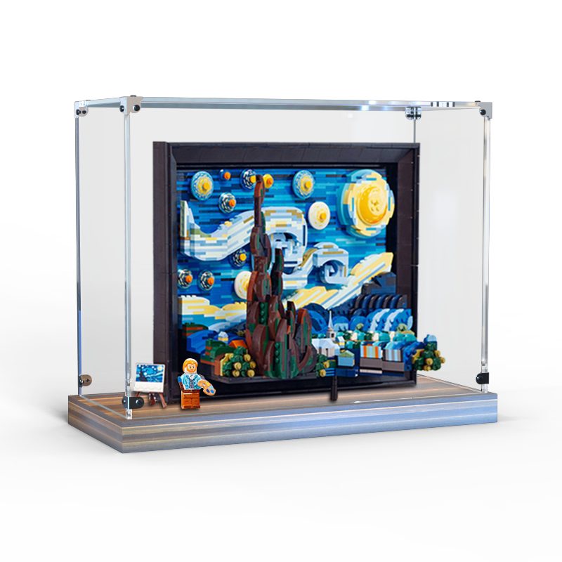 📚 适用乐高21333梵高星月夜积木玩具模型亚克力木质底座防尘展示盒