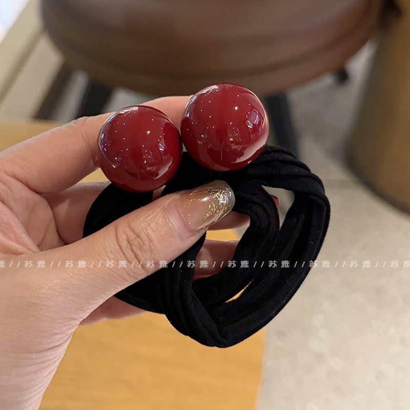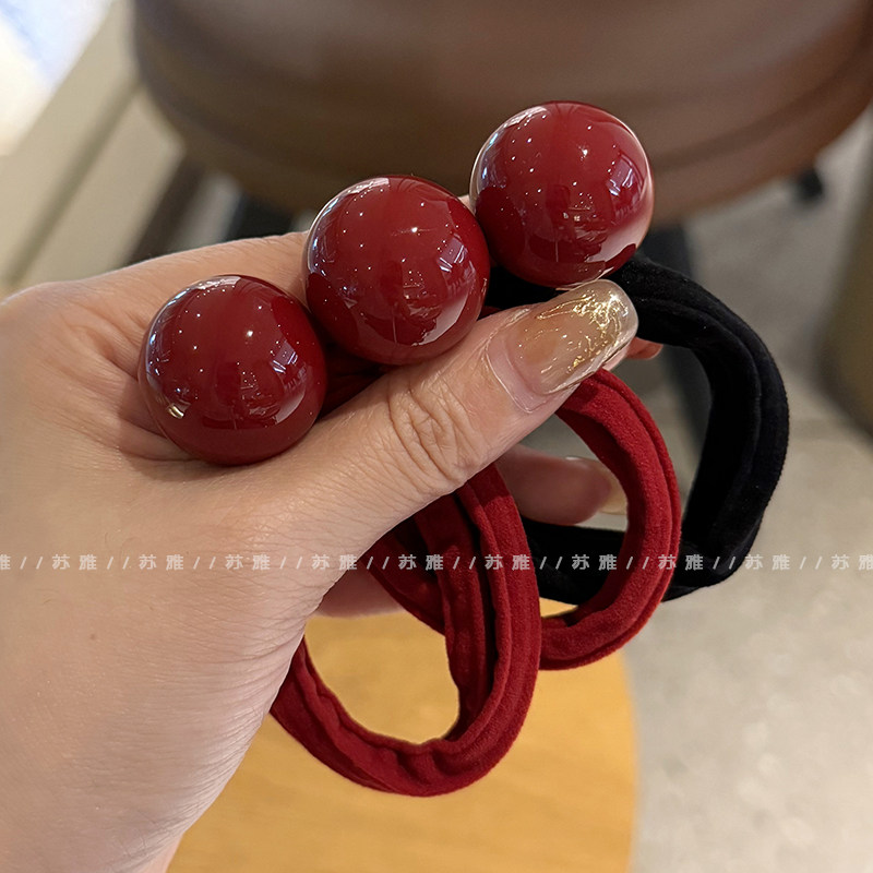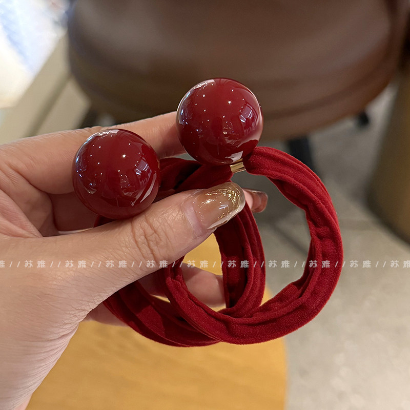 📚 安可拉红发圈头饰发绳气质红色橡皮筋本命年高级感2026新年头绳女