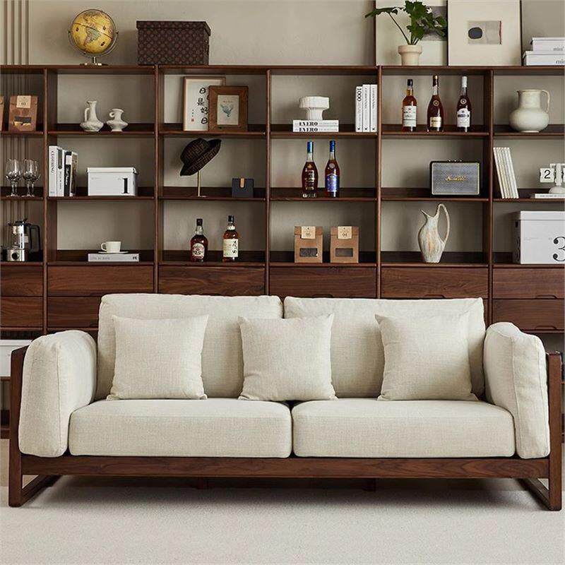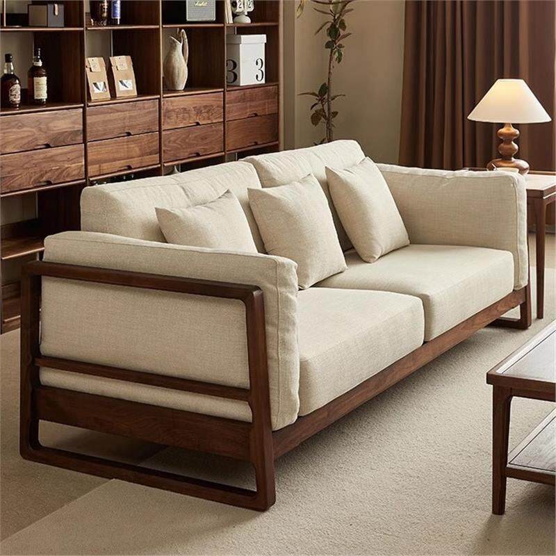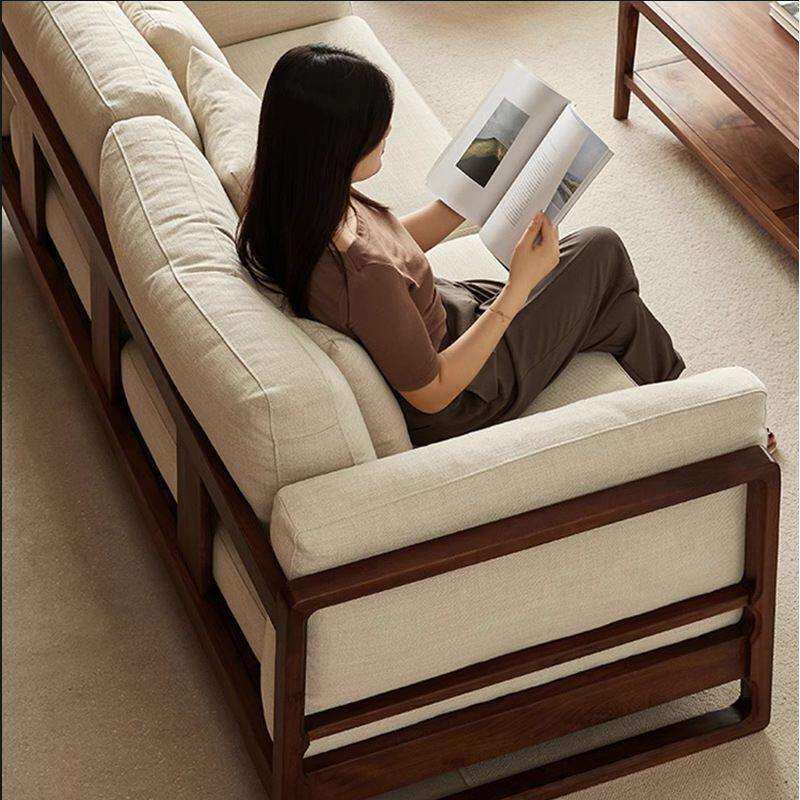 📚 新中式单排沙发客厅2025新款高端胡桃木色实木组合布艺单人家用可