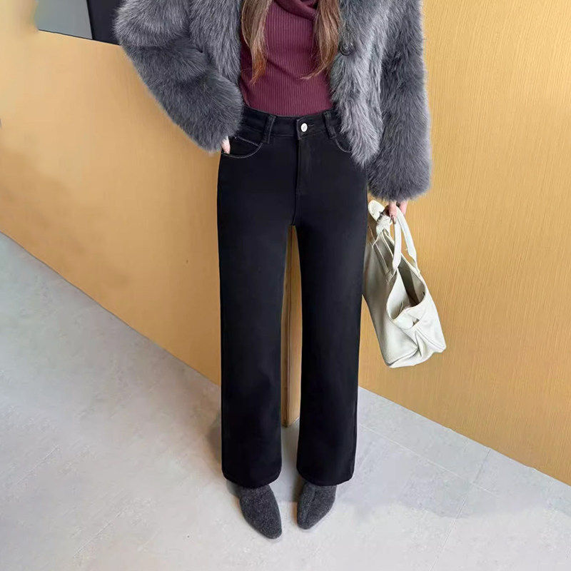 📚 韩尚裤业2025冬季新款加绒加厚垂感宽松阔腿牛仔裤女窄版直筒长裤