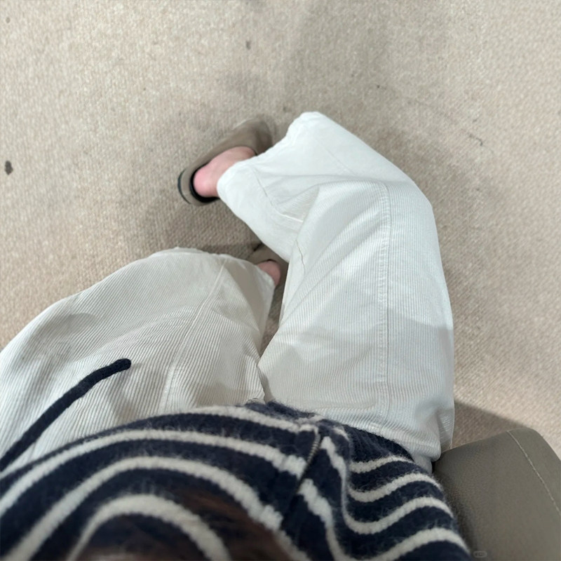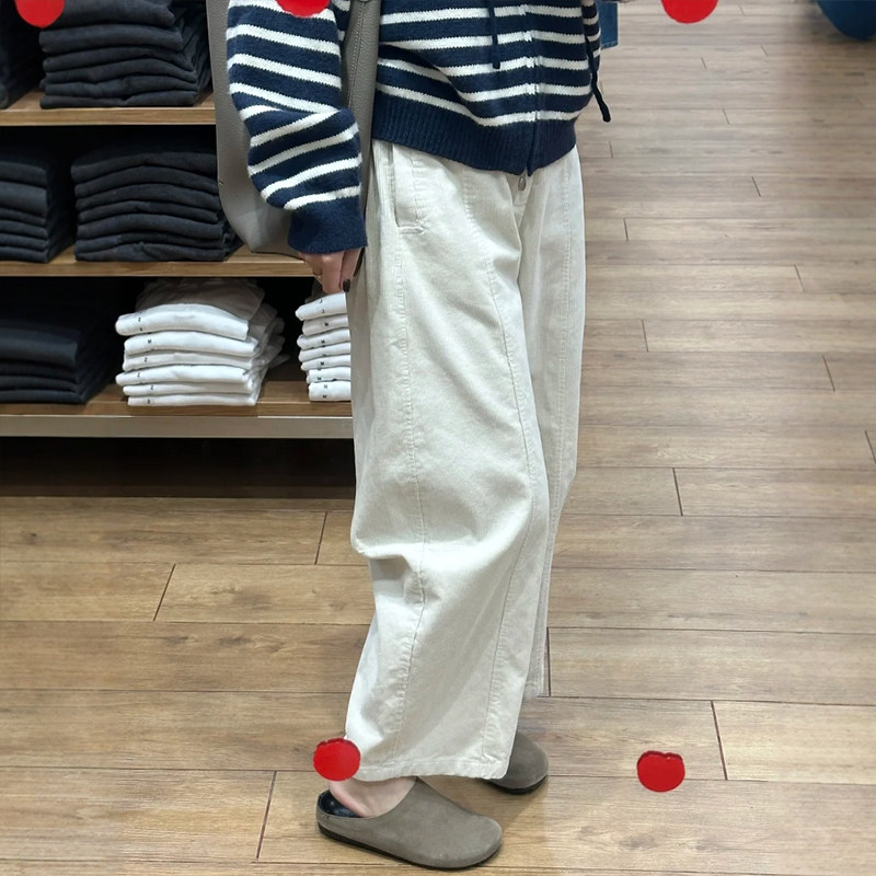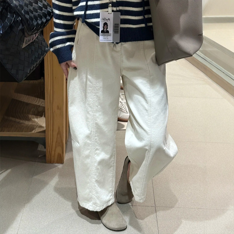 📚 白色灯芯绒阔腿弯刀裤子女款冬加厚镰刀裤大码九分今年流行梧桐裤