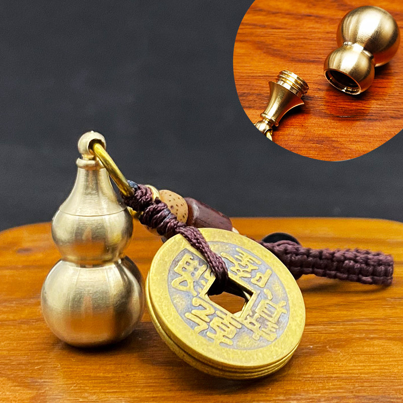 📚 纯铜空心葫芦药瓶随身救心丸老人便携急救药罐吊坠钥匙扣挂件防水