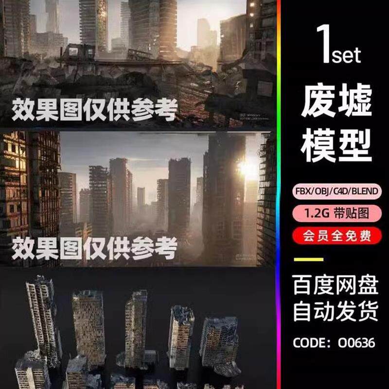 📚 c4d建筑废墟战后毁灭城市倒塌楼房3d模型blender素材fbx建模3dmax
