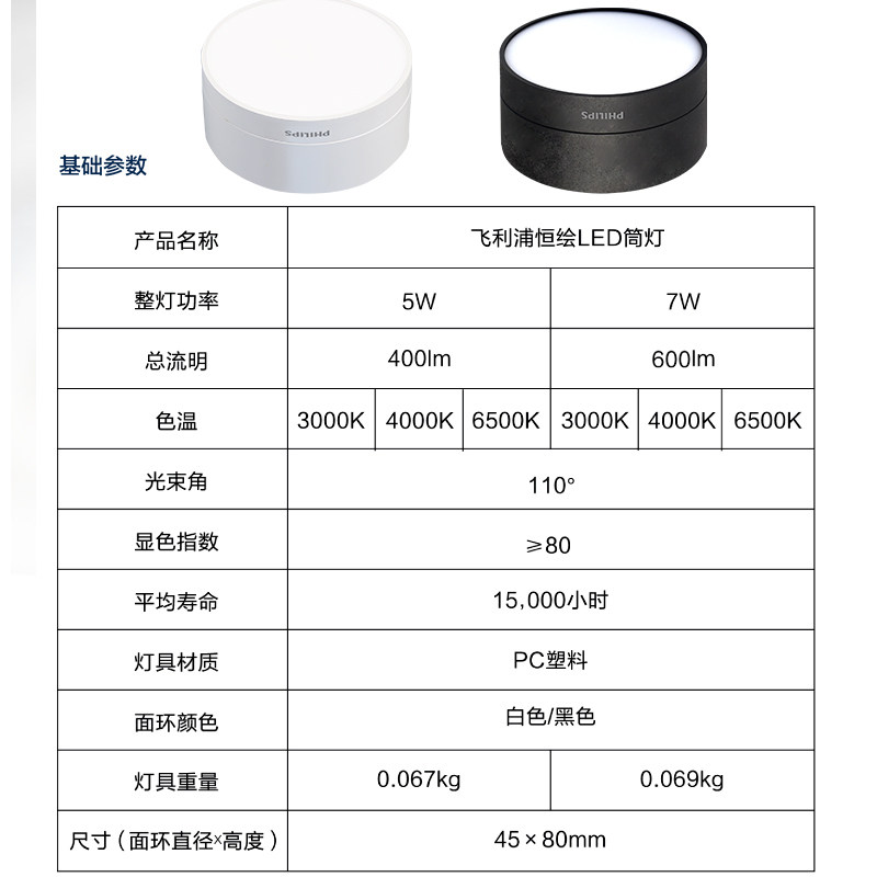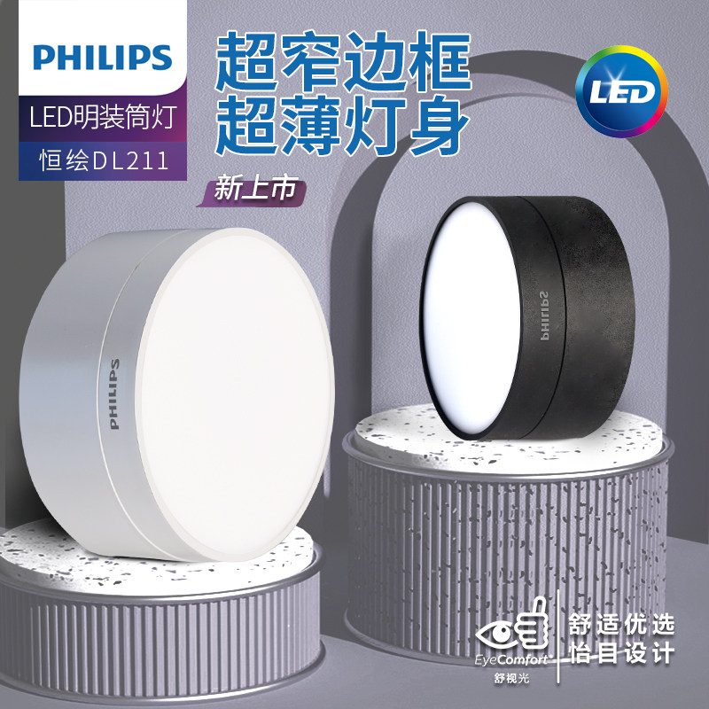 📚 飞利浦明装筒灯吸顶圆形客厅背景卧室玄关走廊过道led天花灯射灯