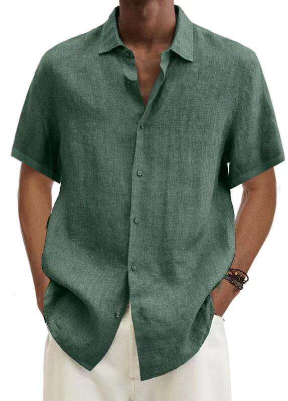 📚 Men's casual shirt 欧美男装V领纽扣棉麻纯色休闲男潮衬衫衬