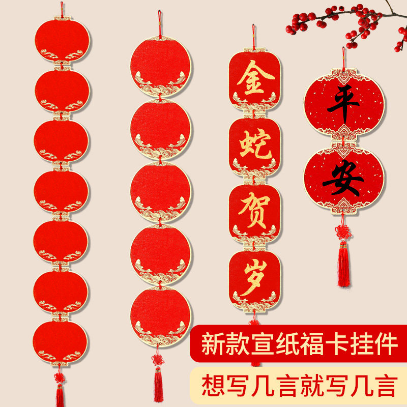📚 加厚万年红福卡串二四五七言对联挂件福字硬卡中国结挂饰宣纸福挂串福字纸手写吉语创意diy客厅玄关入户装饰