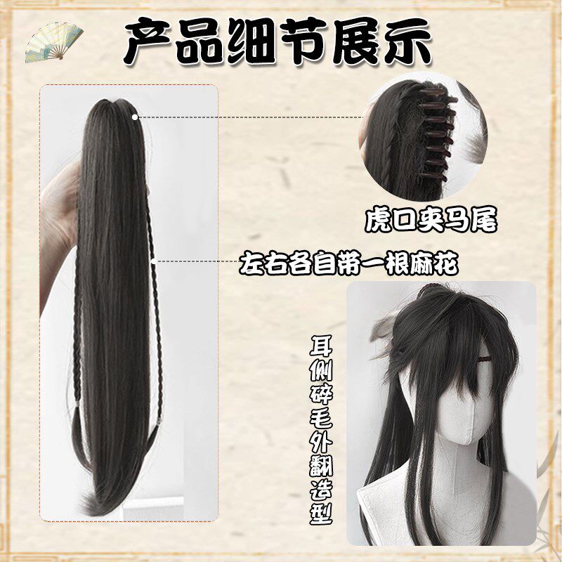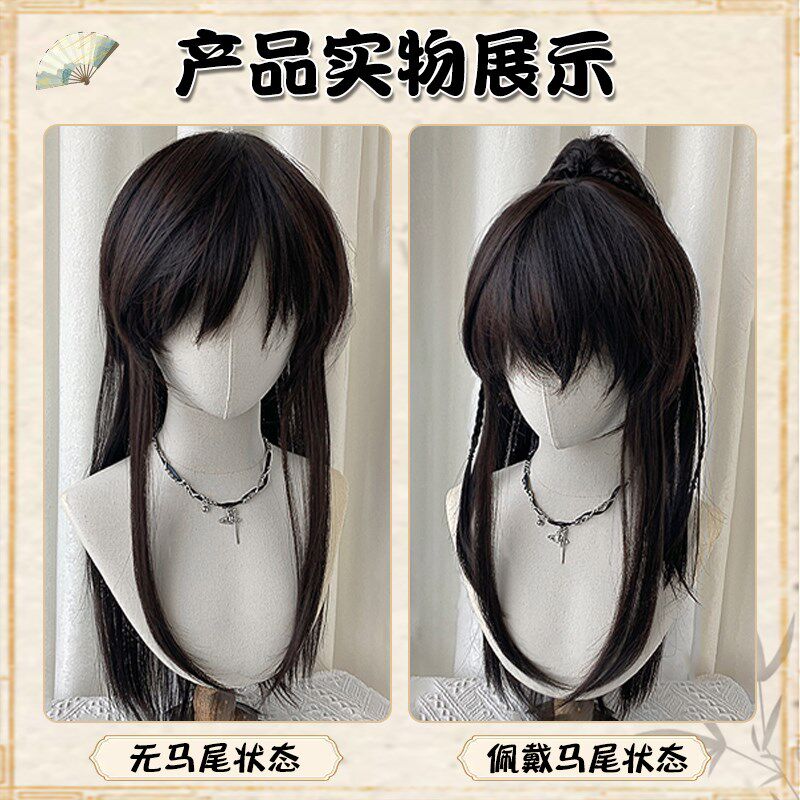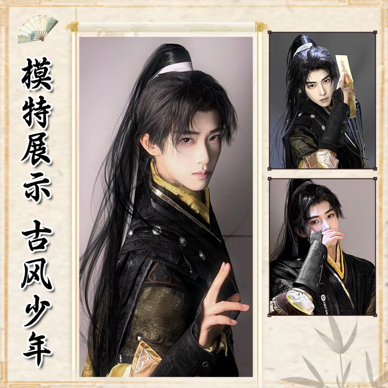 📚 古风假发男生长发新中式高马尾全头套慕子期同款仙侠古装男士假发