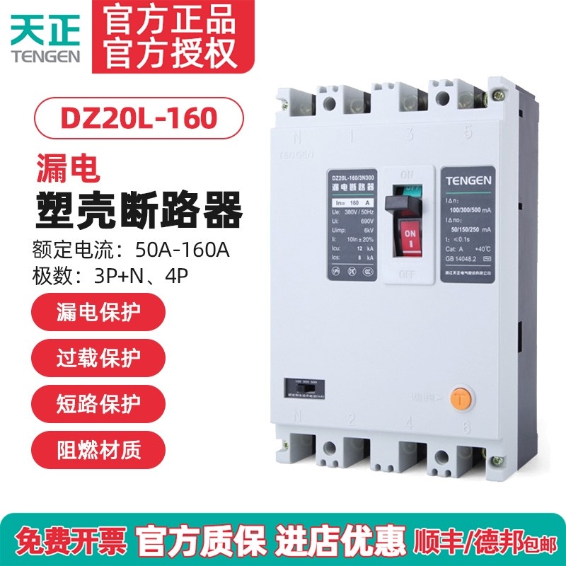 📚 TENGEN天正 DZ20L-160/3N300 160A漏电塑壳断路器三相四线380开关