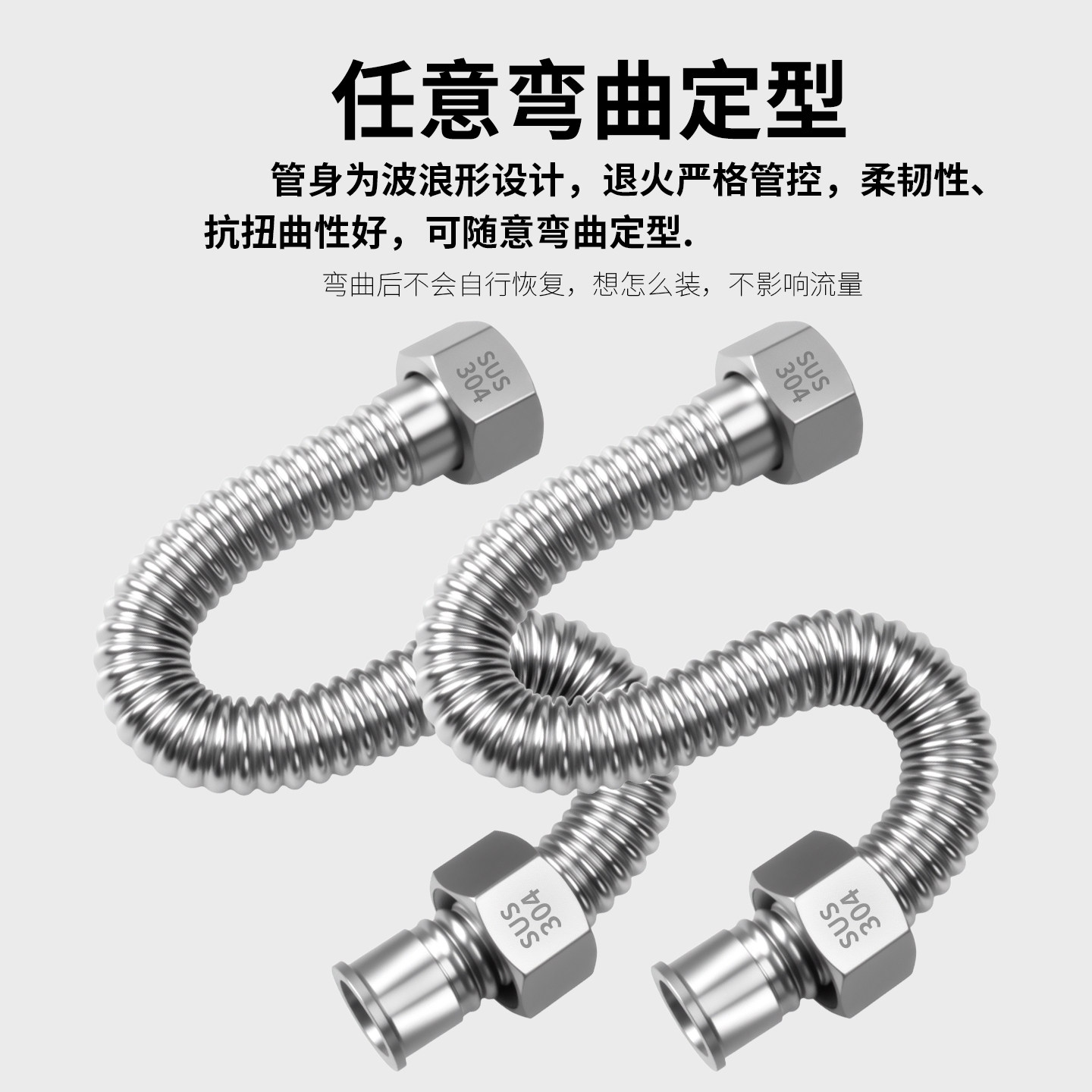 📚 加厚6分304不锈钢波纹管高压防爆壁挂炉暖气片冷热进水管金属软管