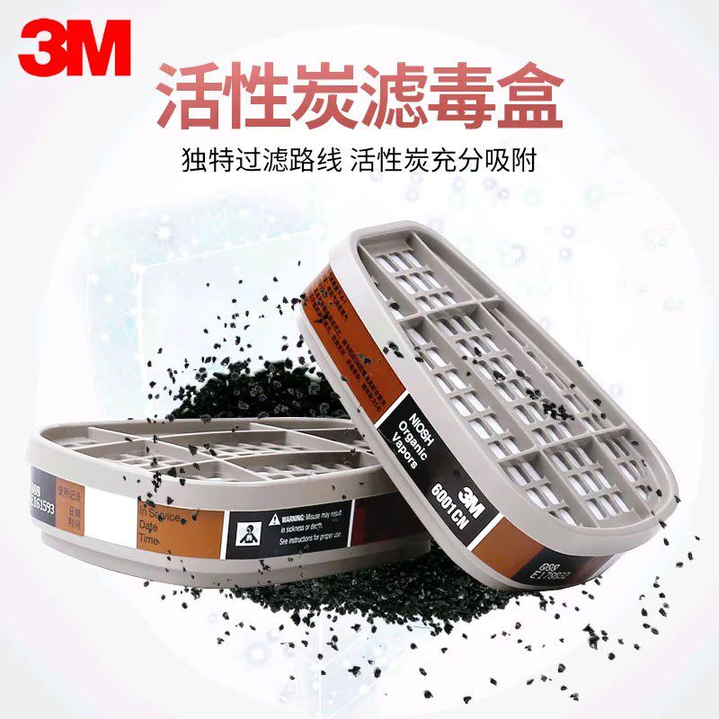 📚 正品3M6001CN过滤盒6002 /3/4/5/6/7滤毒盒防毒面具配件防甲醛