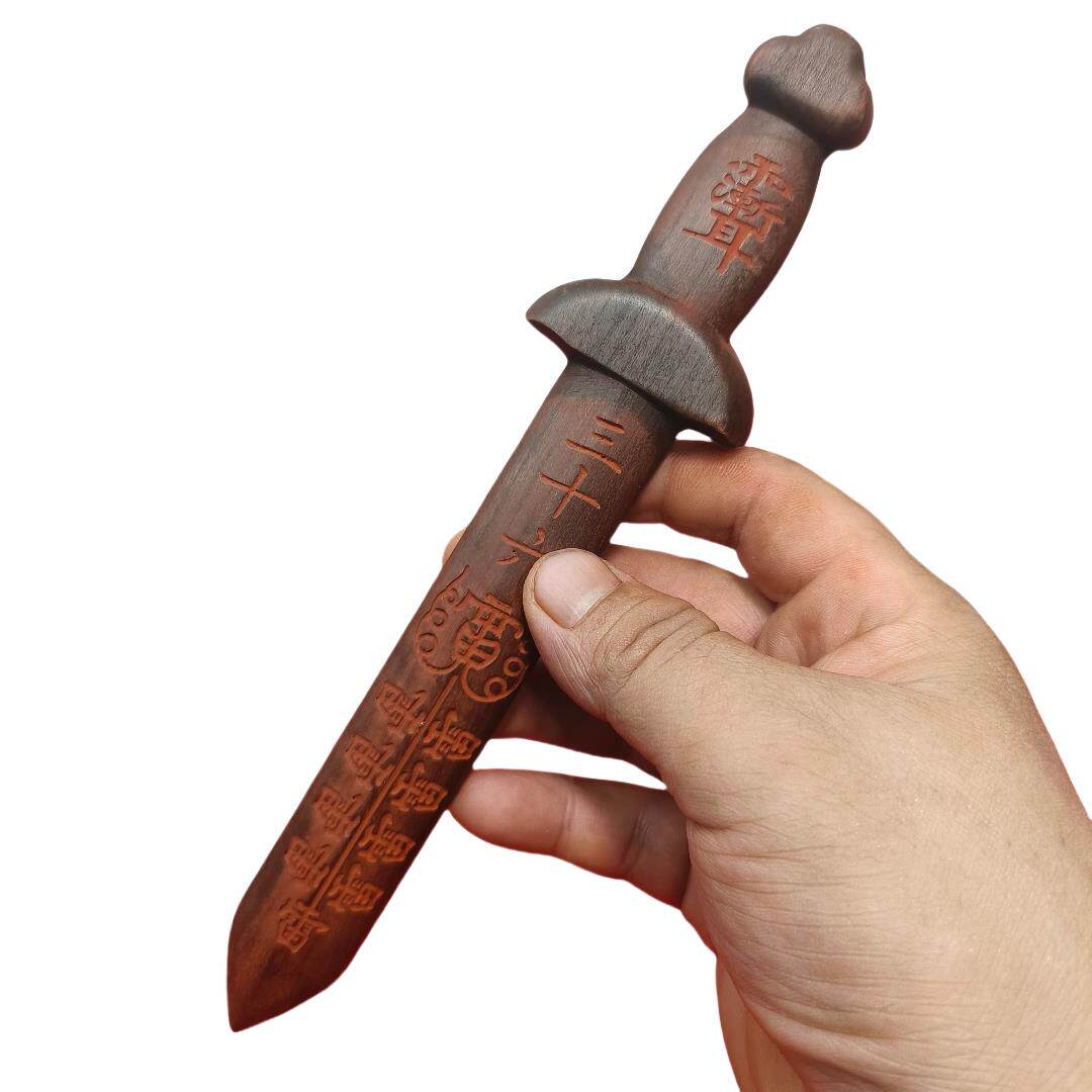 📚 肥城桃木剑道家法器道士用品桃木七星宝剑挂件随身携带小短剑