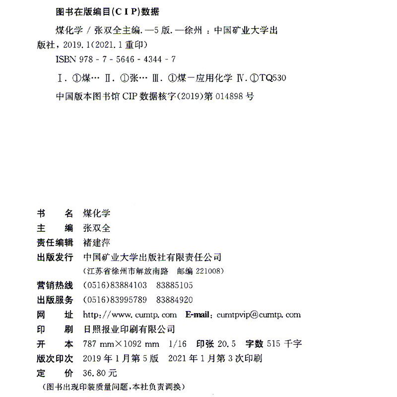 📚 煤化学 第五5版张双全中国矿业大学出版社 化学工程与工艺卓越计划系列教材普通高等教育十一五规划教材 煤化学 第五5版