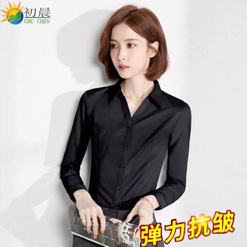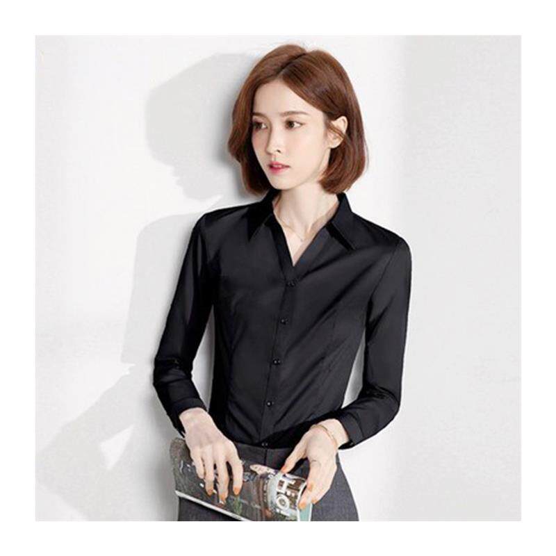 📚 黑色衬衫女长袖2025春秋新款弹力女士衬衣职业女装工作服工装韩版