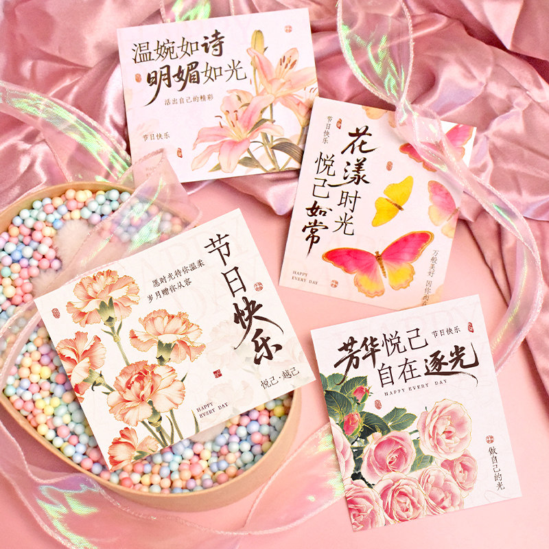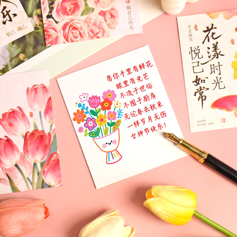 📚 38女神节单面贺卡片三八妇女节鲜花束伴手礼物感谢祝福装饰留言卡墙贴空白手写蛋糕插卡企业送客户手绘高级感