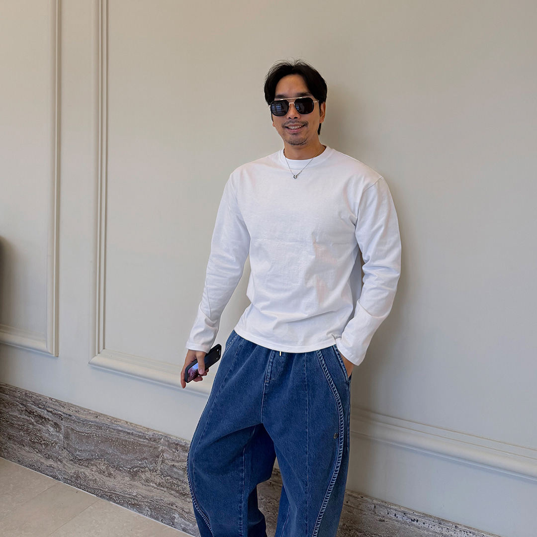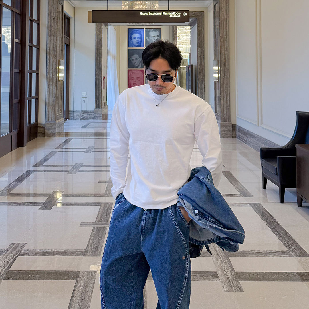 📚 MRDONG韩国代购男装十六支纯棉洗水短款长袖T恤利落显瘦叠穿神器