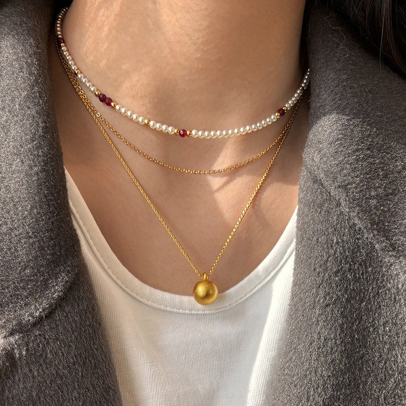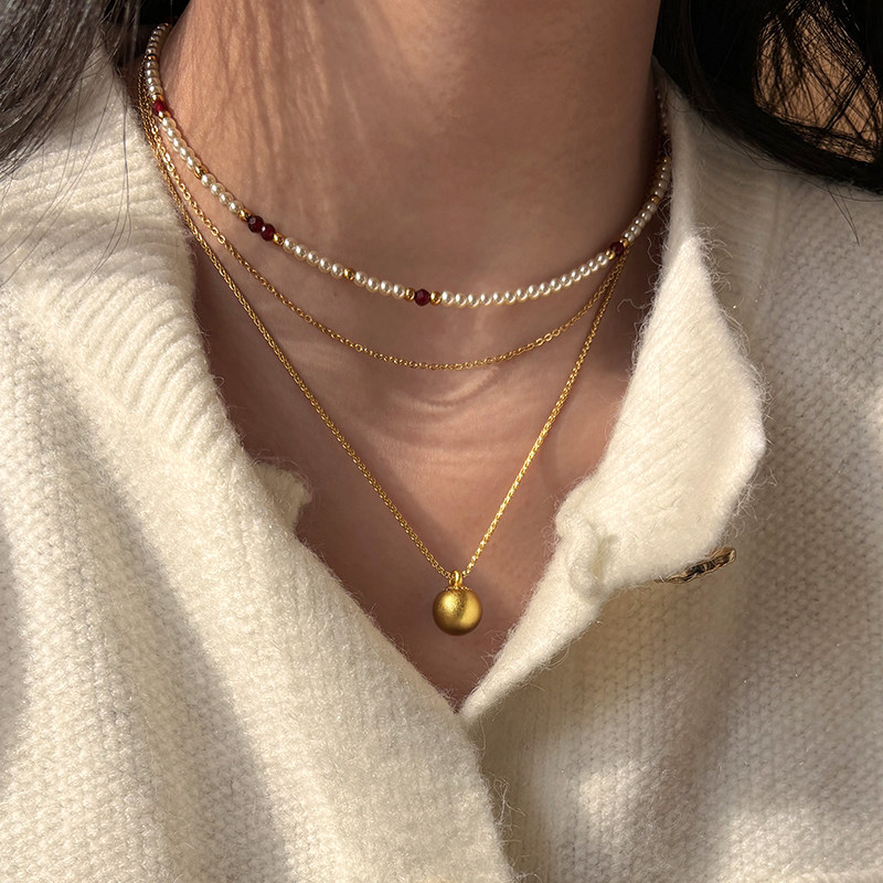 📚 有求必应古法沙金项链女小金球吊坠叠戴轻奢高级感新款锁骨毛衣链