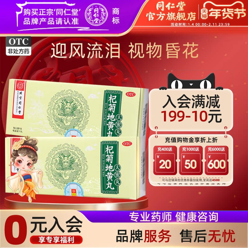 📚 6盒】同仁堂杞菊地黄丸大蜜丸肝肾阴亏眩晕耳鸣羞明畏光视物昏花