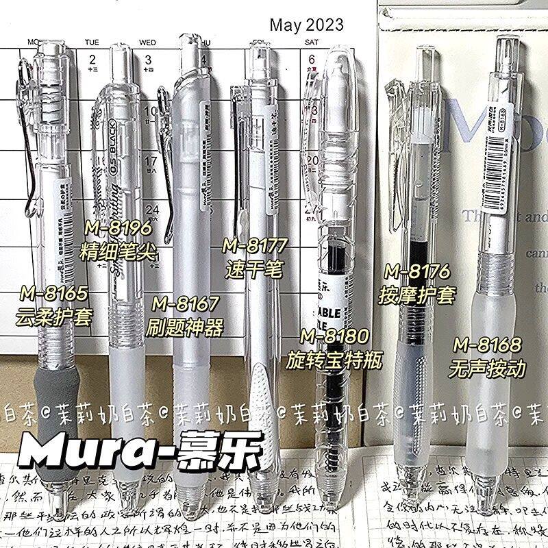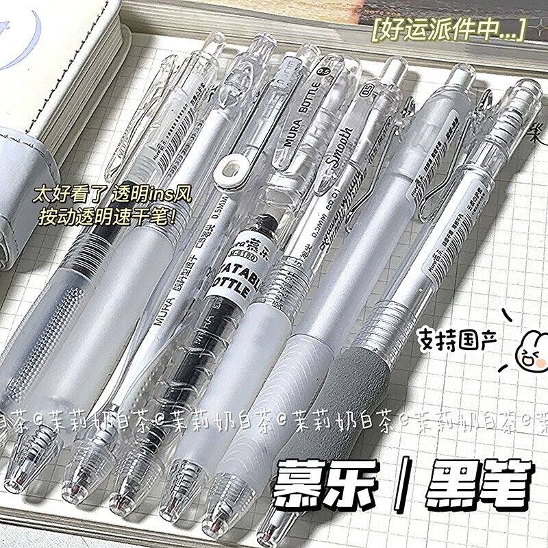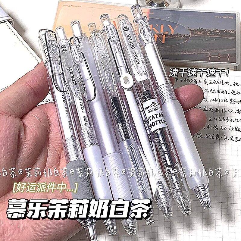 📚 慕乐茉莉奶白茶套装按动笔ins高颜值简约学生特别好写刷题笔0.5黑速干好用黑色水笔好看的圆珠笔按压式